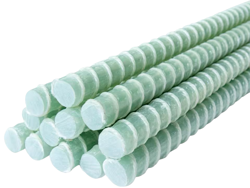 In FRP/GRP products, the polymer matrix typically epoxy or vinylester thermosetting resins binds the fiberglass, transfers loads, and protects it from environmental and mechanical damage. For applications such as FRP rebars, this structure offers excellent strength, corrosion resistance, and long-term durability, making it a superior alternative to traditional materials like steel.